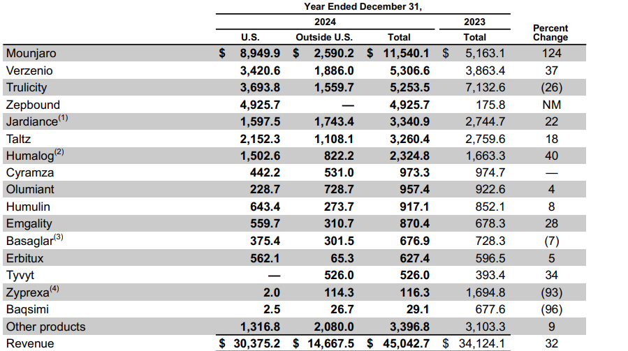- ์ผ๋ผ์ด๋ฆด๋ฆฌ ์ ์ ์จ ํค์๊ฐ๋ ์ค: ๋ ธ๋ณด๋ ธ๋์คํฌ๊ฐ 2021๋ ๊ฐ์ฅ ๋จผ์ ์ฃผ์ฌํ ๋น๋ง์น๋ฃ์ '์๊ณ ๋น'๋ฅผ ์ถ์ํ๋ฉฐ 3๋ ๊ฐ ์์ฅ์ ์ฃผ๋ํ์ผ๋, ์ผ๋ผ์ด๋ฆด๋ฆฌ์ '์ ญ๋ฐ์ด๋'์ '๋ง์ด์๋ก'๊ฐ ๋ฏธ๊ตญ์ ์ค์ฌ์ผ๋ก ํ๋งค๋์ด ๊ธ์ฆํ๋ฉฐ ๊ธ๋ก๋ฒ ์ ์ ์จ์ ํค์๊ฐ๋ ์ค์ด๋ค. ๋ฏธ๊ตญ ์์ฅ์์๋ 1Q25 ์ ์ ์จ 53.3%(๋ ธ๋ณด ๋ ธ๋์คํฌ 46.1%), 2Q25 57%(๋ ธ๋ณด ๋ ธ๋์คํฌ 42.5%)๋ก ๋ ธ๋ณด ๋ ธ๋์คํฌ๋ฅผ ์์๊ธฐ ์์ํ๋ค.